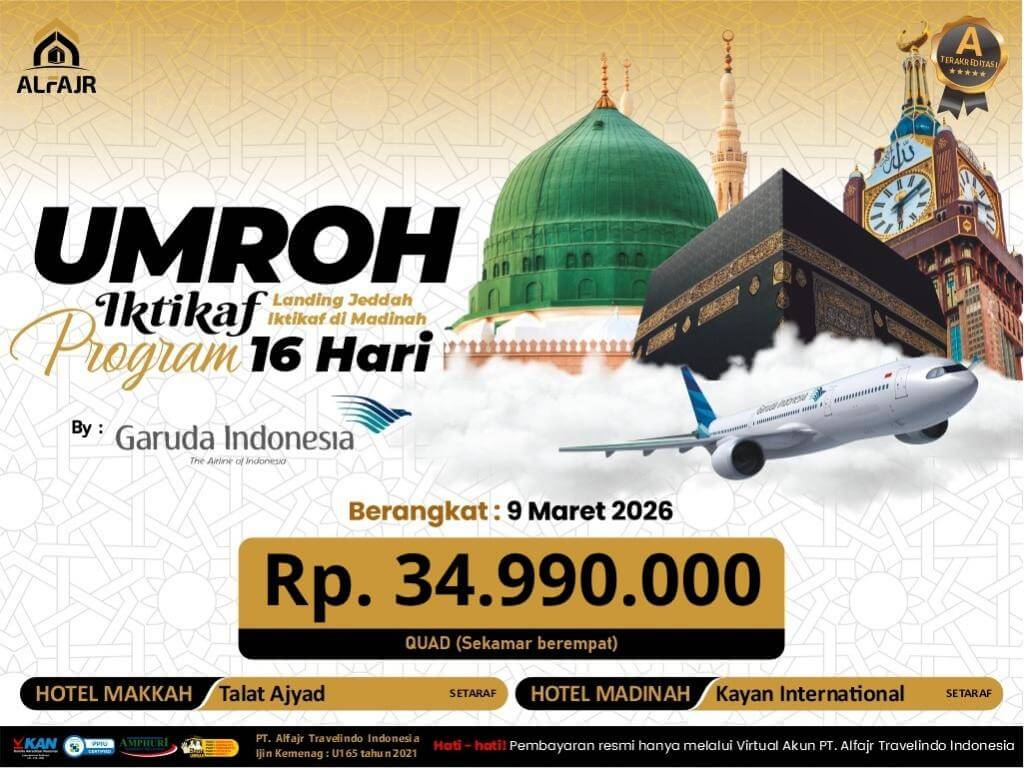 PAKET UMROH 9 MARET 2026 GA 16H ITIKAF MADINAH